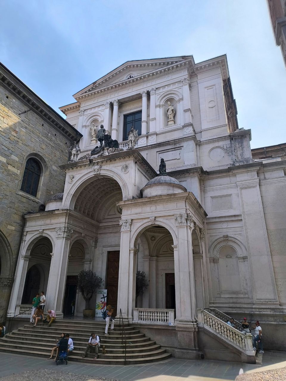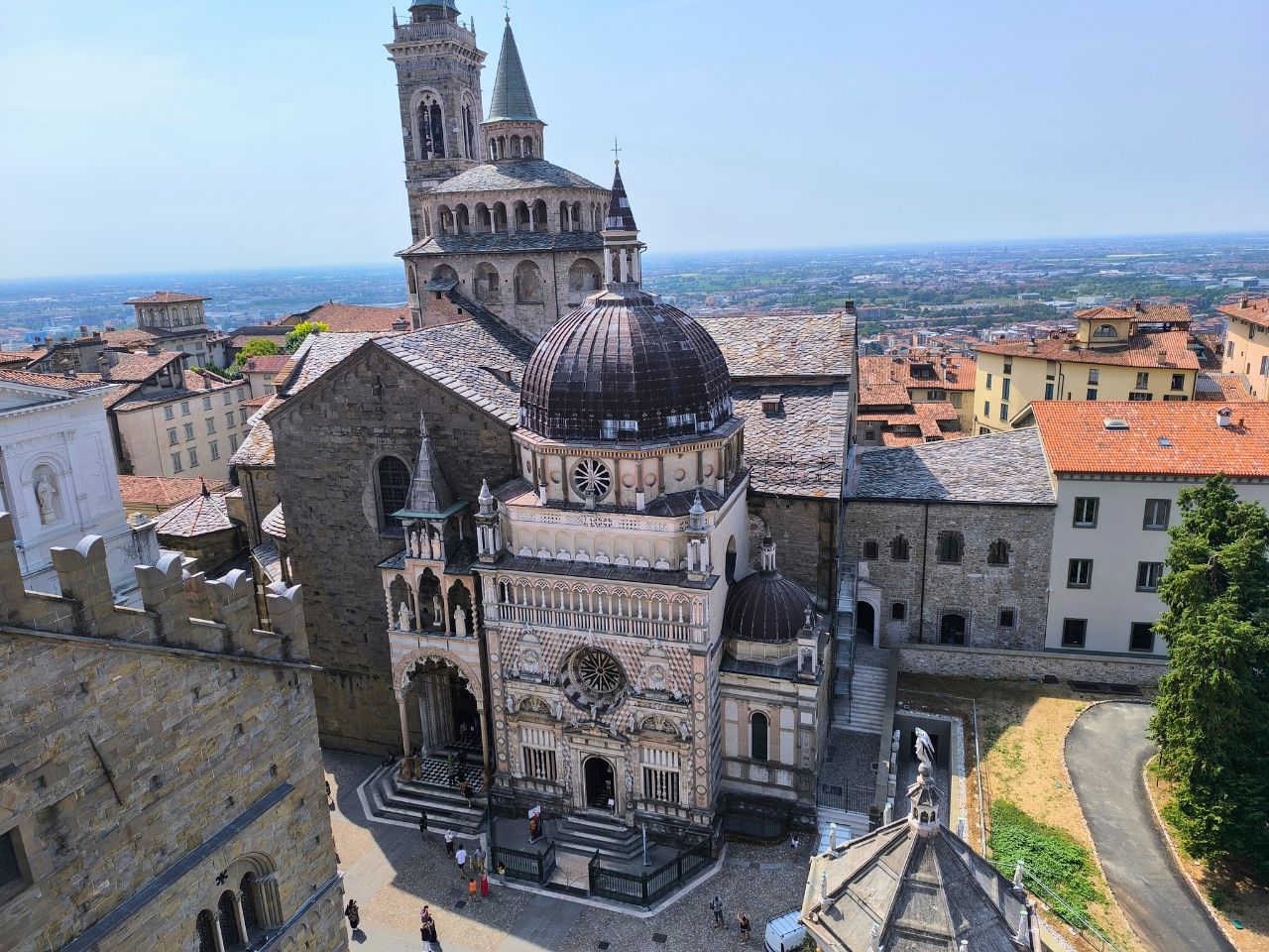 Angeschlossen findest du die Cappella Colleoni, das reich verzierte Mausoleum des Condottiere Bartolomeo Colleoni. Schon die marmorne Fassade mit roten und weißen Steinintarsien ist ein Hingucker – ein echtes Highlight für Liebhaber italienischer Baukunst.